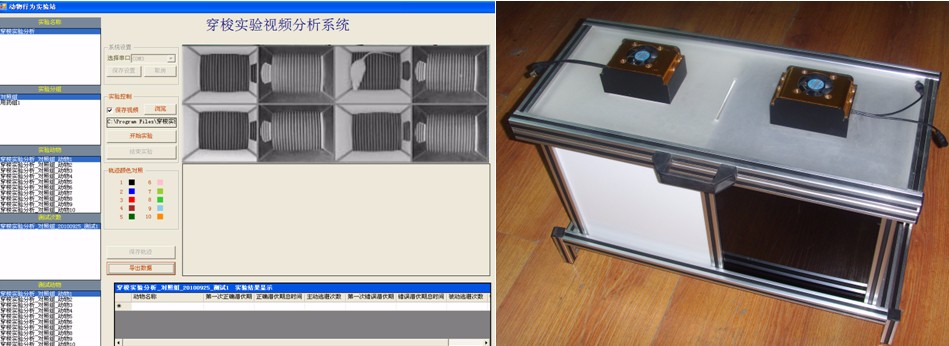 本系統(tǒng)是通過攝像視頻跟蹤方式的分析系統(tǒng)。該系統(tǒng)以攝像系統(tǒng)、電腦、刺激器三大部件作為硬件基礎(chǔ),實(shí)驗(yàn)過程中不需要對實(shí)驗(yàn)動物作特殊標(biāo)記。軟件識別算法采用了軌跡預(yù)測、局部和全局相結(jié)合的搜索技術(shù),可以任意追蹤和記錄實(shí)驗(yàn)動物(大小鼠)的位置,采用開放式、系統(tǒng)可擴(kuò)展性強(qiáng),結(jié)果可導(dǎo)入到Excel,并進(jìn)行直方圖\曲線\軌跡的處理,便于用戶在SPSS、SAS等生物分析統(tǒng)計(jì)軟件中作進(jìn)一步分析處理。