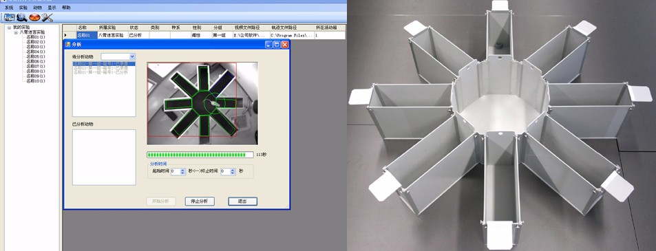 八臂迷宮是一種用于研究動(dòng)物空間記憶的迷宮模型。它由一個(gè)中心區(qū)和其周?chē)B接的八條臂組成,在其中一些臂的末端放入食餌或?qū)⒁恍┍凼┮噪姄簦鶕?jù)動(dòng)物的取食或逃避策略(進(jìn)入每個(gè)臂的次數(shù)、時(shí)間、錯(cuò)能(如動(dòng)物活動(dòng)路徑、各種時(shí)間、次數(shù)及參數(shù)),還能通過(guò)聲、光、電等刺激-應(yīng)答模塊建立完整的各種條件、非條件刺激環(huán)境,具有運(yùn)行學(xué)習(xí)記憶實(shí)驗(yàn)的能力。對(duì)于八臂迷宮,它所記錄的數(shù)據(jù)資料,如時(shí)誤次數(shù)、路線等),可反應(yīng)其記憶能力。應(yīng)用:已經(jīng)應(yīng)用在一系列神經(jīng)行為為基礎(chǔ)的學(xué)習(xí)記憶、有毒化學(xué)藥品的毒性作用和新藥或新療法的效果研究中。材料:鋁合金不繡鋼 醫(yī)用塑料 電刺激模塊。